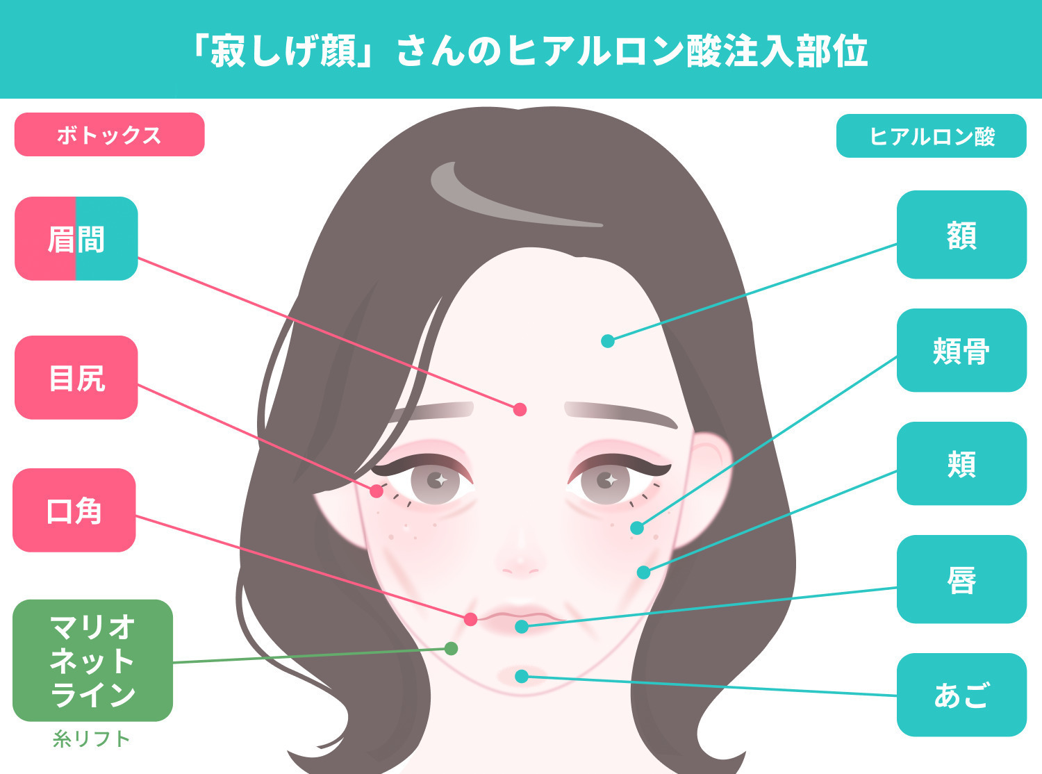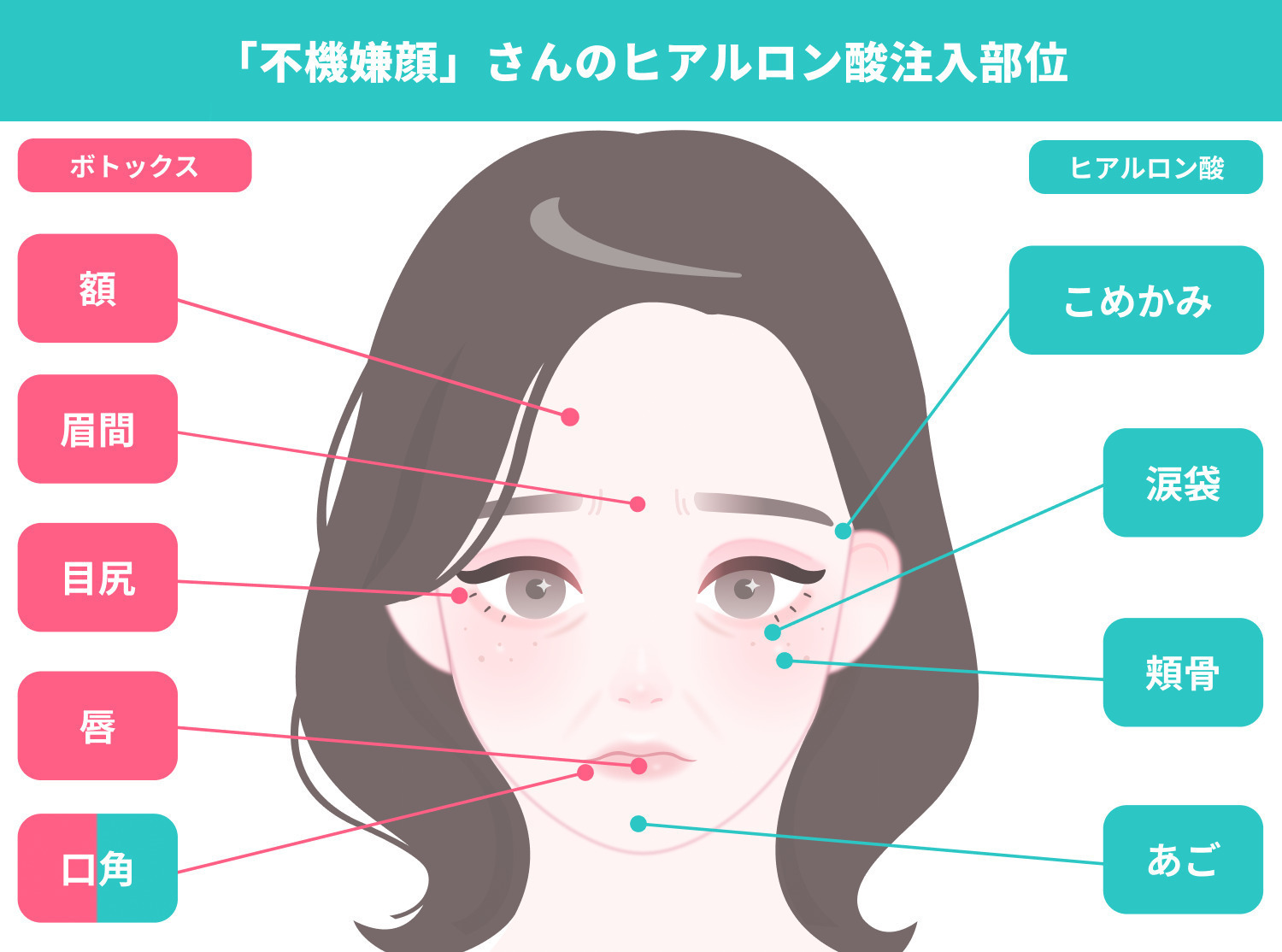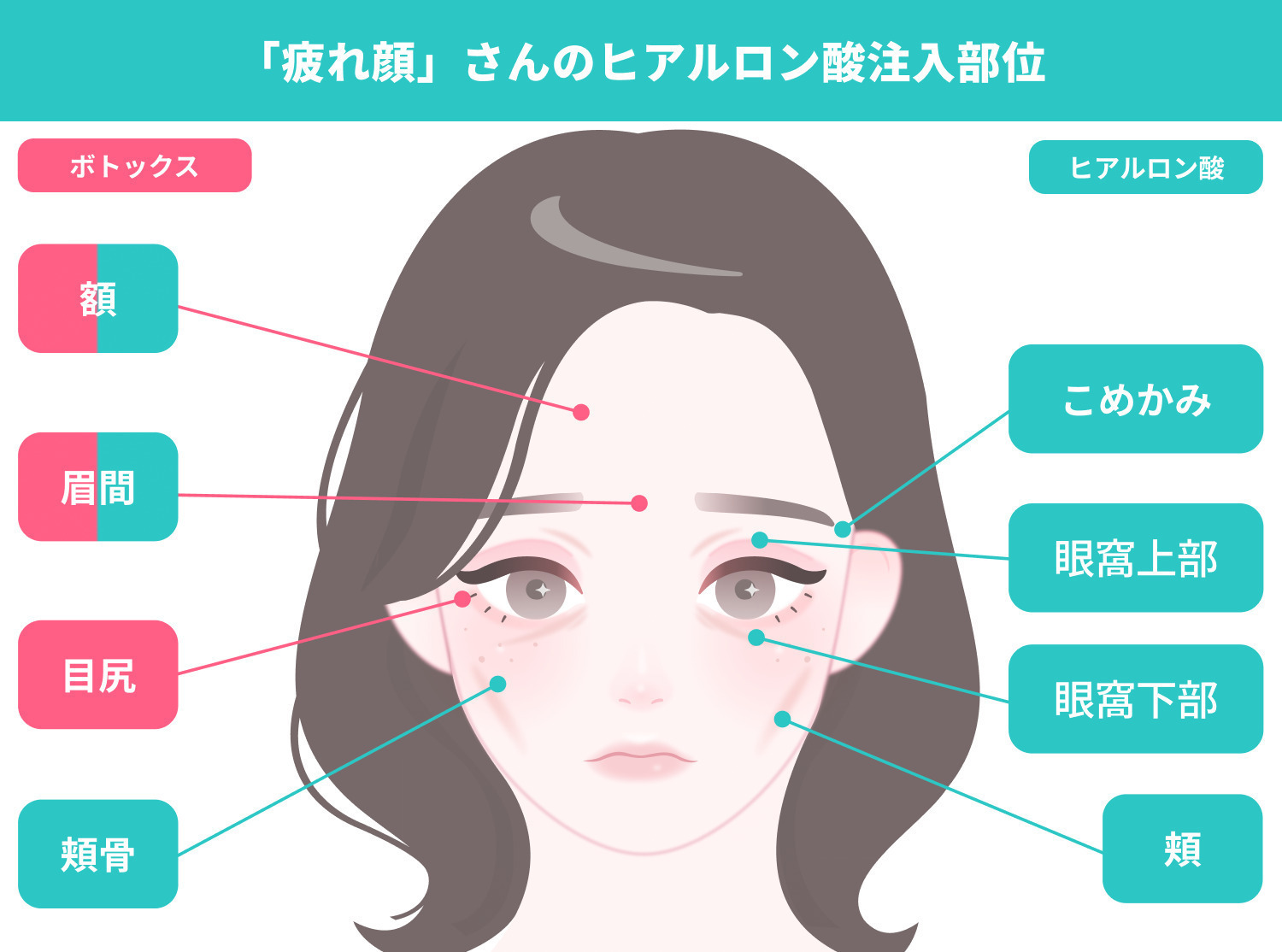 今回は、「疲れ顔」「寂しげ顔」「不機嫌顔」の悩みに分けて、原因と適した注入部位を解説します。自分に当てはまるものをチェックしてみてください!