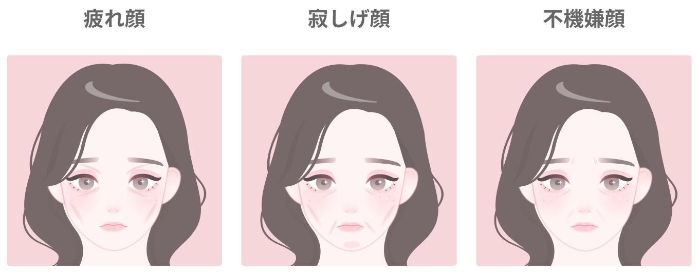 「疲れ顔」「寂しげ顔」「不機嫌顔」と一言に言っても、さまざまな要因があります。