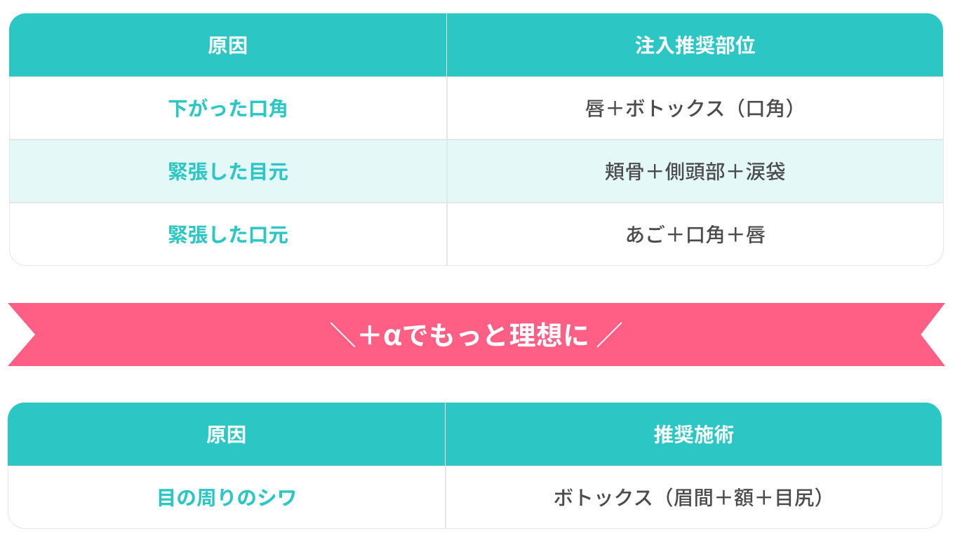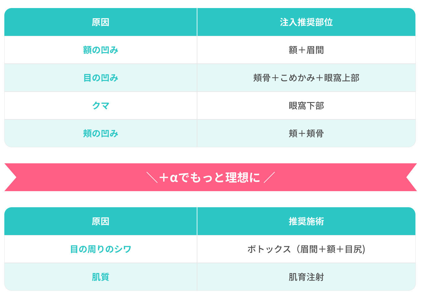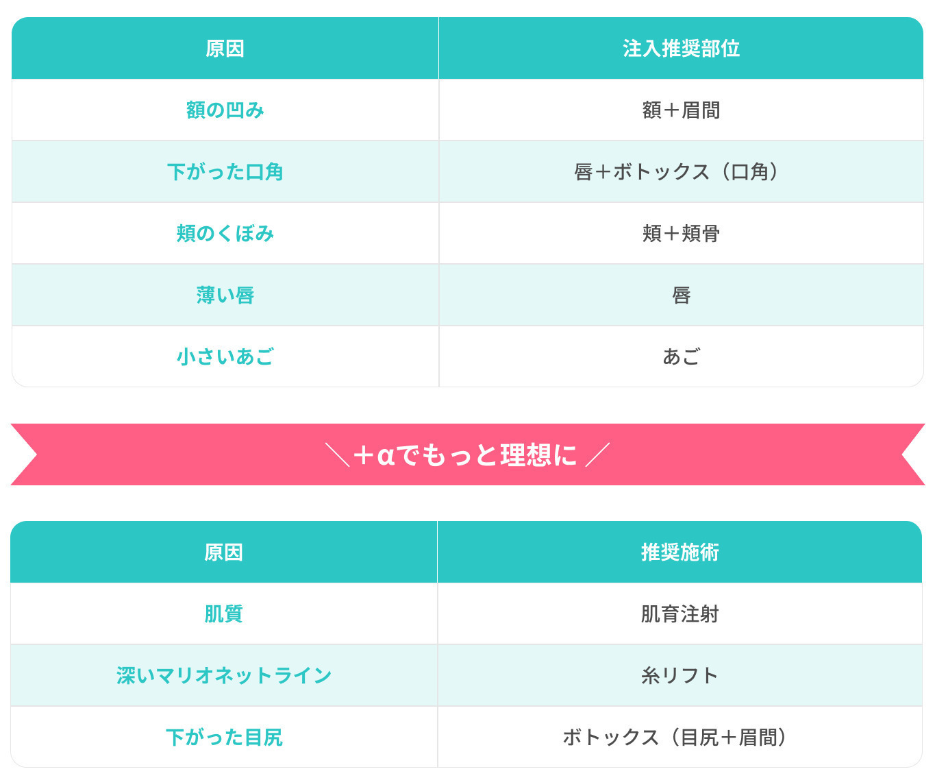 紹介した原因と注入部位は一例のため、この記事を参考にしつつ、ドクターにしっかり相談しましょう!