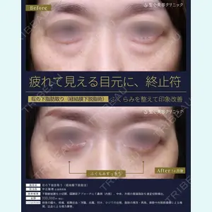 - 【40代女性・若々しく美しい目元に】目の下のたるみ取り(経結膜下脱脂術)(1ヶ月後)の施術の症例