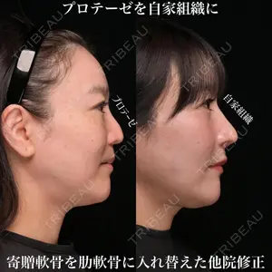 - 術後1ヶ月 他院修正 自家組織隆鼻、肋軟骨よる鼻中隔延長、耳介軟骨移植、鼻尖形成、貴族手術、猫手術、骨切り幅寄せ 顎下脂肪吸引、糸リフト10本の施術の症例