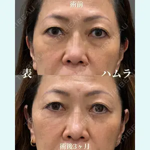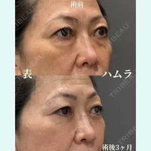 - 表ハムラ 術後3ヶ月 50代 女性 切開ハムラにより眼窩脂肪の突出、シワを一気に改善しました。 術後3ヶ月なのでかなり落ち着いてきている時期です。