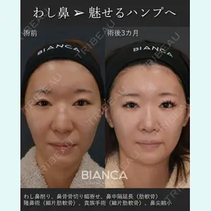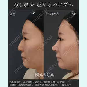 わし鼻削り+鼻骨骨切り幅寄せ+鼻中隔延長(肋軟骨) +隆鼻術(細片肋軟骨) +貴族手術(細片肋軟骨) +鼻尖縮小BIANCA銀座 / 女性