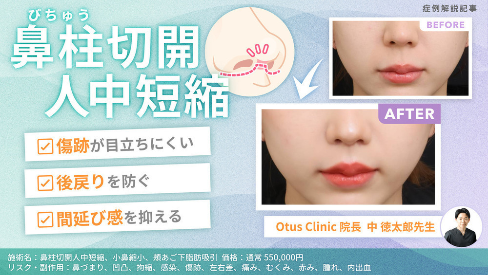 - 美容外科医歴14年以上・症例4万件以上のベテラン院長による0円カウンセリング✨人中短縮は複数の術式をご用意!表面に傷ができない術式も◎インタビュー記事を掲載中📚